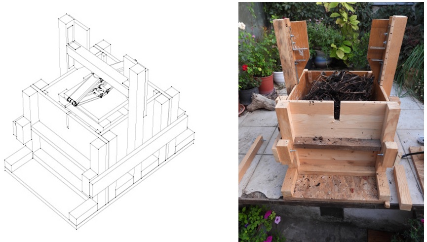 Az itt látható, a zöld hulladékot préselő szerkezet a Szellemi Tulajdon Nemzeti Hivatala számára leadott beadvány után lehetett volna széles körben népszerűsíteni. A leírás nem készült el, a leadás nem történt meg.